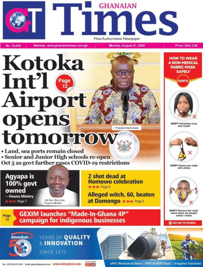 Newspaper Headlines: Monday, August 31, 2020 Newspaper Headlines August 31, 2020 7:36 am - Audio By Carbonatix FacebookWhatsAppTwitterTelegramEmailPinterestPrint Previous articleThis Jamaican woman woke up from coma with British accent after tragic accident [video]Next articleInteresting scenes from Mahama’s Oti Regional tour RELATED ARTICLES Newspaper Headlines Newspaper headlines: Monday, November 24, 2025 Newspaper Headlines Newspaper headlines: Friday, November 21, 2025 Newspaper Headlines Newspaper headlines: Thursday, November 20, 2025
