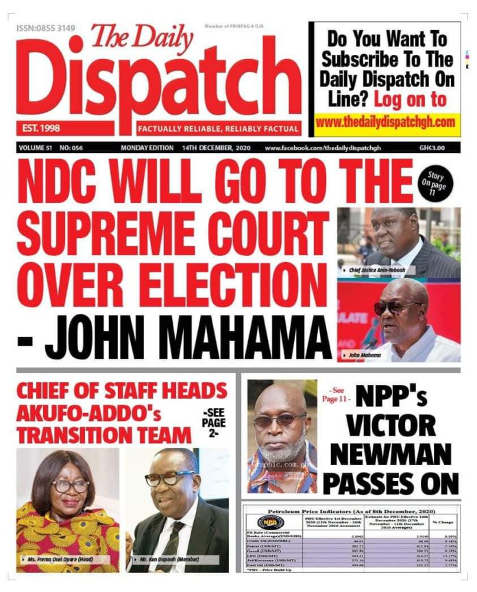 Newspaper Headlines: Monday, December 14, 2020 Newspaper Headlines December 14, 2020 7:43 am - Audio By Carbonatix FacebookWhatsAppTwitterTelegramEmailPinterestPrint Previous articleAkufo-Addo leaves Ghana for Ivory Coast, Guinea and UKNext articleNDC must go to court – Dr Emmanuel Akwetey RELATED ARTICLES Newspaper Headlines Newspaper headlines: Monday, November 24, 2025 Newspaper Headlines Newspaper headlines: Friday, November 21, 2025 Newspaper Headlines Newspaper headlines: Thursday, November 20, 2025