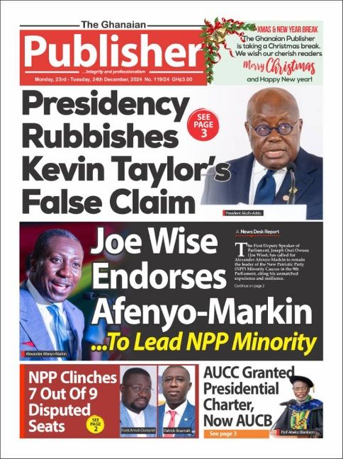 Newspaper headlines: Monday, December 23, 2024 News December 23, 2024 8:33 am - Audio By Carbonatix FacebookWhatsAppTwitterTelegramEmailPinterestPrint Previous articlePost-election violence: Akufo-Addo calls on Police to review practicesNext articleDon’t remove Jean Mensa; allow her to work – Prof. Adei to Mahama TagsNewspaper headlines RELATED ARTICLES News Jospong Group donates towards Zoomlion Central Mosque completion Local News Ato Forson sets record in paying contractors – Roads Minister Agbodza Business Prof Gyampo outlines major reforms, cost-reduction measures at GSA’s 32nd management workshop