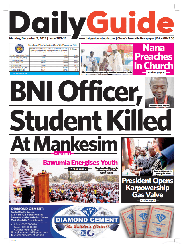 Newspaper Headlines: Monday, December 9, 2019 Newspaper HeadlinesUncategorized December 9, 2019 7:27 am - Audio By Carbonatix FacebookWhatsAppTwitterTelegramEmailPinterestPrint Previous articleWhy Kenyan women are writing on the streetsNext articleListen: Police pick up 5 persons in connection with Mankessim shooting RELATED ARTICLES Newspaper Headlines Newspaper headlines: Monday, November 24, 2025 Newspaper Headlines Newspaper headlines: Friday, November 21, 2025 Newspaper Headlines Newspaper headlines: Thursday, November 20, 2025