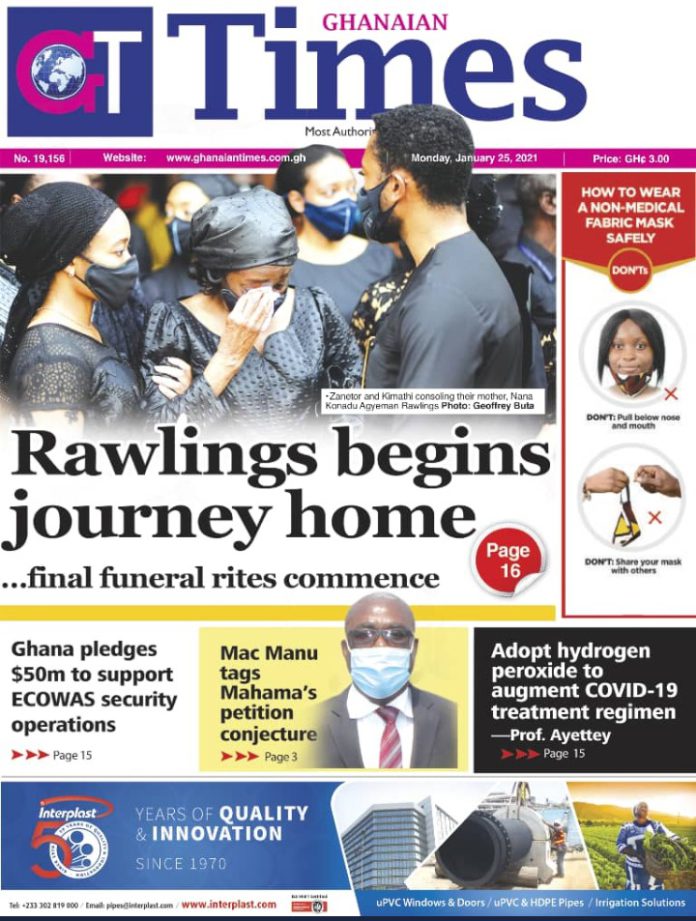 Newspaper Headlines: Monday, January 25, 2021 Newspaper Headlines January 25, 2021 7:23 am - Audio By Carbonatix FacebookWhatsAppTwitterTelegramEmailPinterestPrint Previous articleWhy we didn’t get to spend much time with our father – Zanetor Rawlings explainsNext articleJoyce Blessing reacts after Cecilia Marfo’s microphone saga [Video] RELATED ARTICLES Newspaper Headlines Newspaper headlines: Monday, November 24, 2025 Newspaper Headlines Newspaper headlines: Friday, November 21, 2025 Newspaper Headlines Newspaper headlines: Thursday, November 20, 2025