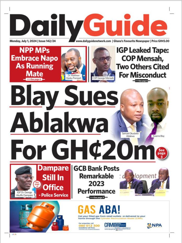 Newspaper headlines: Monday, July 1, 2024 Newspaper Headlines July 1, 2024 7:44 am - Audio By Carbonatix FacebookWhatsAppTwitterTelegramEmailPinterestPrint Previous articleDalberg Implement: Integrating Strategy Design with ExecutionNext articlePetrol price to go up 2%, LPG by 5% – IES TagsNewspaper headlines RELATED ARTICLES Local News Asantehene demands enforcement of law recognising Naba Azoka II as Bawku Chief Local News Government to issue position on Bawku peace mediation report within 24 hours Local News Bryan Acheampong says Bawumia is his biggest competitor in NPP race