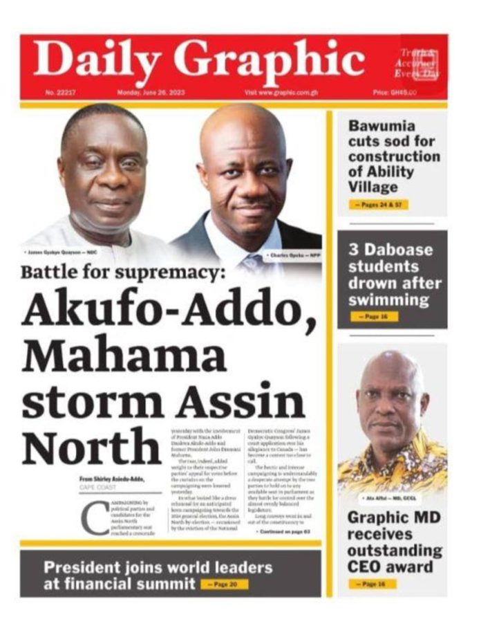 Newspaper Headlines: Monday, June 26, 2023