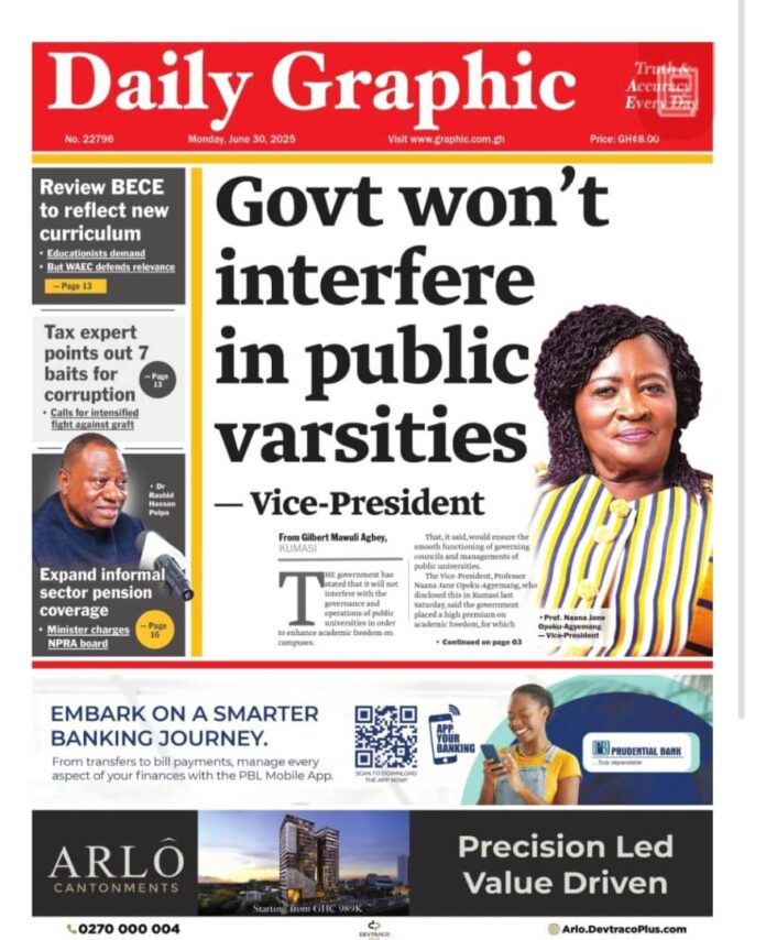 Newspaper headlines: Monday, June 30, 2025 Newspaper Headlines June 30, 2025 6:06 am - Audio By Carbonatix FacebookWhatsAppTwitterTelegramEmailPinterestPrint Previous articleBlack Queens end WAFCON preparations with 3-1 defeat to NigeriaNext articleIdeal Air Services Ghana Limited unveils new showroom in Accra TagsNewspaper headlines RELATED ARTICLES News Four arraigned over importation of cannabis concealed in gift box Nigeria Nigeria’s richest man Dangote escalates oil fight with regulator, seeks corruption probe Local News Otumfuo chastises Bono Regional Minister for using his political position to meddle in Sampa chieftaincy affairs