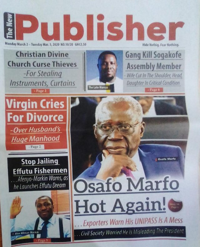 Newspaper Headlines: Monday, March 2, 2020 Newspaper HeadlinesUncategorized March 2, 2020 6:46 am - Audio By Carbonatix FacebookWhatsAppTwitterTelegramEmailPinterestPrint Previous articleMeet the 73-year-old businessman crowned new Wa Yerinaa [photo]Next articleMeet actress Kalsoume Sinare’s first son [photos+videos] RELATED ARTICLES Newspaper Headlines Newspaper headlines: Monday, November 24, 2025 Newspaper Headlines Newspaper headlines: Friday, November 21, 2025 Newspaper Headlines Newspaper headlines: Thursday, November 20, 2025