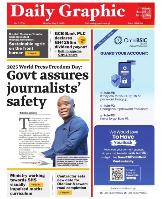 Newspaper headlines: Monday, May 5, 2025 Newspaper Headlines May 5, 2025 6:59 am - Audio By Carbonatix FacebookWhatsAppTwitterTelegramEmailPinterestPrint Previous articleHarry’s emotional avalanche hits the Royal FamilyNext articleUgandan UN judge jailed in Britain for more than six years for forced labour offence RELATED ARTICLES Politics Ken Agyapong lacks temperament for presidency, he can beat up a cabinet minister – Atta Akyea Local News Ato Forson sets record in paying contractors – Roads Minister Agbodza Education Education Ministry announces payment of outstanding teacher allowances