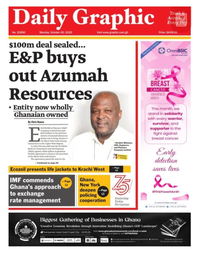Newspaper headlines: Monday, October 20, 2025 Newspaper Headlines October 20, 2025 7:01 am - Audio By Carbonatix FacebookWhatsAppTwitterTelegramEmailPinterestPrint Previous articleWestern Regional Minister urges vigilance as Ivorians flee pre-election violenceNext articleArmwrestling: Central Region to become Ghana’s hub – Abass Sulley TagsNewspaper headlines RELATED ARTICLES Local News NPP denies involvement in bee attack on NDC supporters Local News Bee Attack: NPP allegedly brought three mallams from Niger to Kpandai – Mustapha Gbande Local News Supreme Court will dismiss Kpandai case; it lacks merit – Tanko Computer