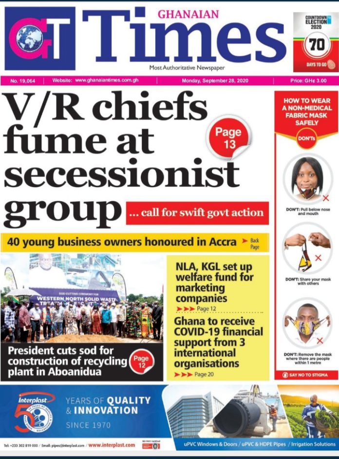 Newspaper Headlines: Monday, September 28, 2020 Newspaper Headlines September 28, 2020 8:46 am - Audio By Carbonatix FacebookWhatsAppTwitterTelegramEmailPinterestPrint Previous articleMay it not be well with you…Next articleA Plus shares tips on how to quit after smoking for 20 years RELATED ARTICLES Newspaper Headlines Newspaper headlines: Monday, November 24, 2025 Newspaper Headlines Newspaper headlines: Friday, November 21, 2025 Newspaper Headlines Newspaper headlines: Thursday, November 20, 2025