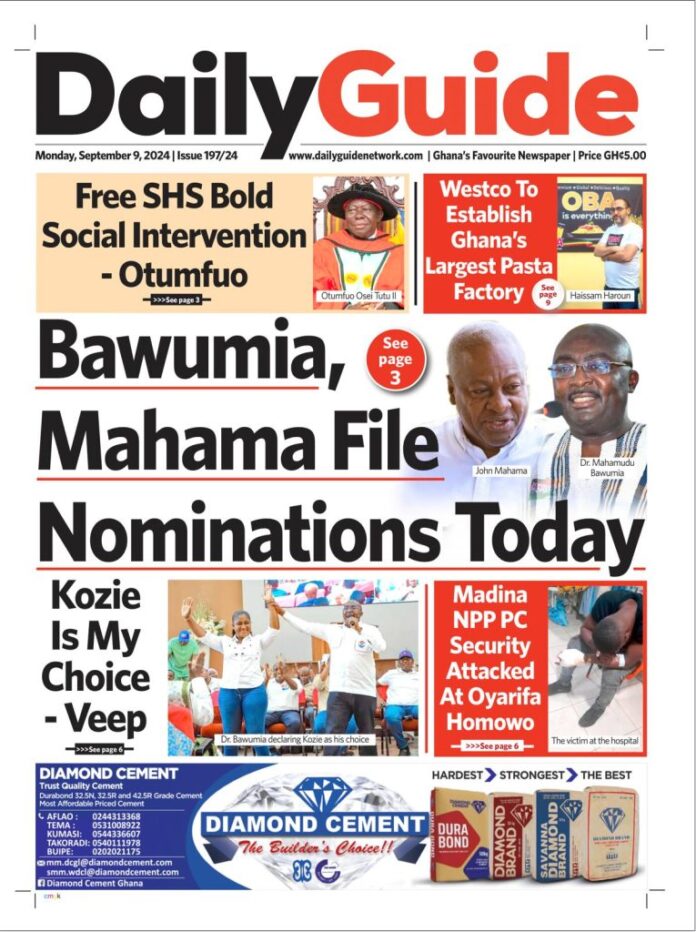 Newspaper headlines: Monday, September 9, 2024 Newspaper Headlines September 9, 2024 7:30 am - Audio By Carbonatix FacebookWhatsAppTwitterTelegramEmailPinterestPrint Previous articleCourt orders arrest of couple over defrauding landlady of GH¢260KNext articleBusinessman granted bail over alleged visa fraud TagsNewspaper headlines RELATED ARTICLES News GNFS trains fire volunteers in Tolon District to boost community fire safety Entertainment TikToker Peller arrested for reckless driving during livestream News Police arrest two suspects over viral child abuse video at Agona Jamasi