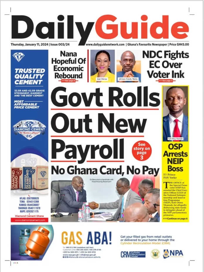 Newspaper headlines: Thursday 11th January 2024 Newspaper Headlines January 11, 2024 7:44 am - Audio By Carbonatix FacebookWhatsAppTwitterTelegramEmailPinterestPrint Previous articleHow I healed my broken heart in 20 minutes, no chocolate requiredNext articleUS and UK hint at military action after largest Houthi attack in Red Sea TagsNewspaper headlines RELATED ARTICLES Local News Republic Bank begins solar-powered borehole project at Taviefe SHS Politics Annoh-Dompreh demands Ministerial reshuffle as absences stall Parliament Local News Kpandai: Supreme Court’s decision to suspend rerun surprising but fair – Justice Abdullai