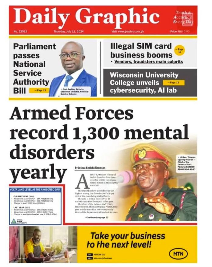 Newspaper headlines: Thursday 11th July 2024 Newspaper Headlines July 11, 2024 8:37 am - Audio By Carbonatix FacebookWhatsAppTwitterTelegramEmailPinterestPrint Previous articleAkua Donkor ‘lacing boots’ for 2024 presidential election [Video]Next articleLiberia’s National Oil Company of Liberia (NOCAL), Liberia Petroleum Regulatory Authority (LPRA) to Mobilize Frontier Exploration Opportunities as Sponsors at African Energy Week (AEW) 2024 RELATED ARTICLES Newspaper Headlines Newspaper headlines: Monday, November 24, 2025 Newspaper Headlines Newspaper headlines: Friday, November 21, 2025 Newspaper Headlines Newspaper headlines: Thursday, November 20, 2025