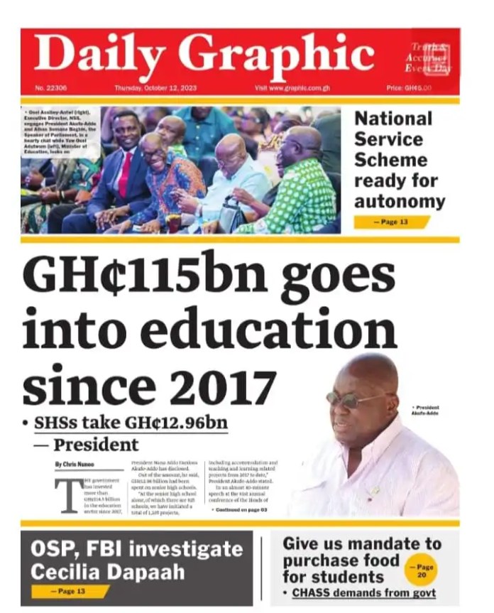 Newspaper headlines : Thursday 12th October 2023