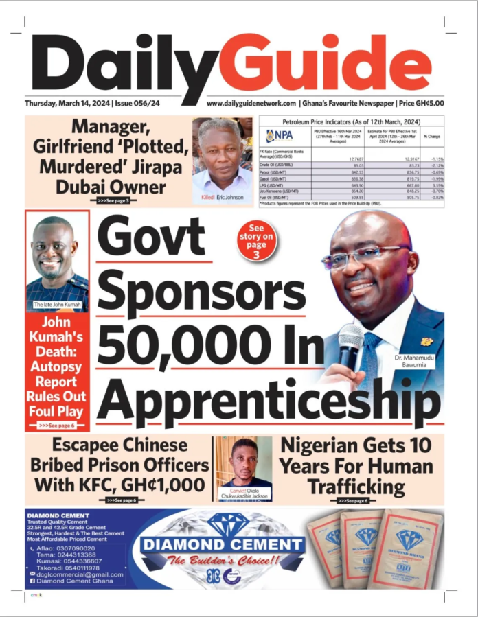 Newspaper headlines: Thursday 14th March 2024 Newspaper Headlines March 14, 2024 6:59 am - Audio By Carbonatix FacebookWhatsAppTwitterTelegramEmailPinterestPrint Previous articleThe Indonesian Embassy in Khartoum inspects the process of loading and unloading containers of Indonesian Crude Palm Oil (CPO) products at the Port of Port SudanNext articleKATH doctors likely to resume work today TagsNewspaper headlines RELATED ARTICLES Local News Asantehene demands enforcement of law recognising Naba Azoka II as Bawku Chief Local News Government to issue position on Bawku peace mediation report within 24 hours Local News Bryan Acheampong says Bawumia is his biggest competitor in NPP race