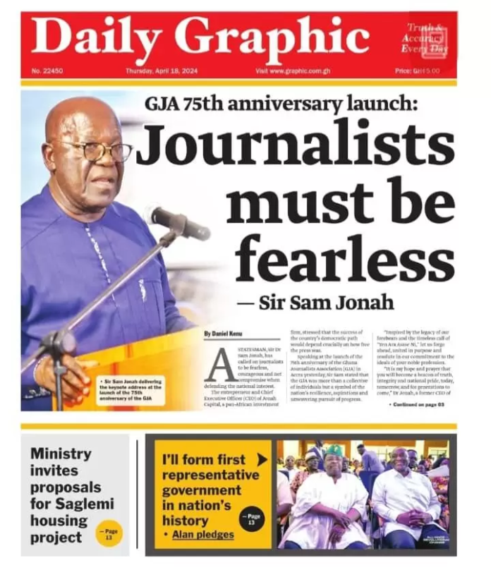Newspaper headlines: Thursday 18th April 2024 NewsNewspaper Headlines April 18, 2024 6:38 am - Audio By Carbonatix FacebookWhatsAppTwitterTelegramEmailPinterestPrint Previous articleUENR breaks silence on robbery attack that claimed student’s lifeNext articleGive true meaning to ‘Yen Ara Asaase Ni’, it’s not just a song – Sam Jonah tells journalists TagsNewspaper headlines RELATED ARTICLES Nigeria Nigeria’s House to look into row between regulator and Dangote over fuel imports, pricing News Ned Nwoko responds to Regina Daniels’ claims of separation from children News Three friends jailed for a total of 27 years for stealing