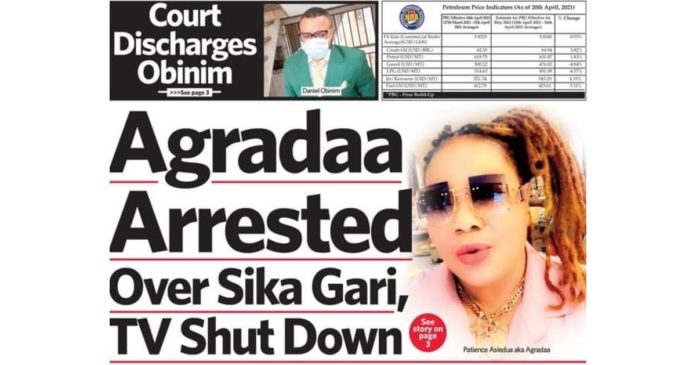 Newspaper Headlines: Thursday, April 22, 2021 Newspaper Headlines April 22, 2021 7:16 am - Audio By Carbonatix FacebookWhatsAppTwitterTelegramEmailPinterestPrint Previous articleI am alive – Popular musician reacts to death rumoursNext articleRodri header gives Manchester City victory at Aston Villa RELATED ARTICLES Newspaper Headlines Newspaper headlines: Monday, November 24, 2025 Newspaper Headlines Newspaper headlines: Friday, November 21, 2025 Newspaper Headlines Newspaper headlines: Thursday, November 20, 2025