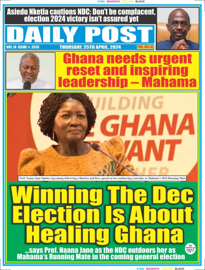 Newspaper headlines: Thursday, April 25, 2024 Newspaper Headlines April 25, 2024 7:20 am - Audio By Carbonatix FacebookWhatsAppTwitterTelegramEmailPinterestPrint Previous articleVan Dijk questions desire of team-mates after loss at EvertonNext article19 steps for getting over even the most devastating breakup fast TagsNewspaper headlines RELATED ARTICLES News GNFS trains fire volunteers in Tolon District to boost community fire safety Entertainment TikToker Peller arrested for reckless driving during livestream News Police arrest two suspects over viral child abuse video at Agona Jamasi