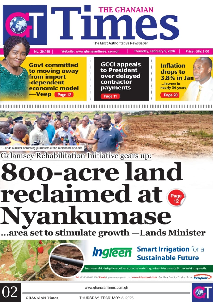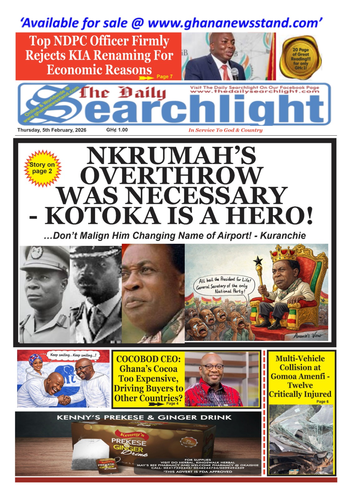 Newspaper headlines: Thursday, February 5, 2026 Newspaper Headlines February 5, 2026 7:26 am - Audio By Carbonatix Here are the front pages of some of Ghana’s newspapers today. FacebookWhatsAppTwitterTelegramEmailPinterestPrint Previous articleTogolese Armed Forces Intelligence pays visit to GAFNext articleDVLA boss clarifies cost of DV registration plates TagsNewspaper headlines RELATED ARTICLES Entertainment Check out Agradaa’s look as she appears in court without cover [Video] Local News King Tackie Tawiah deserves airport naming – Ga Mantse’s protocol chief Entertainment Rex Omar reveals why he switched from gospel to secular music