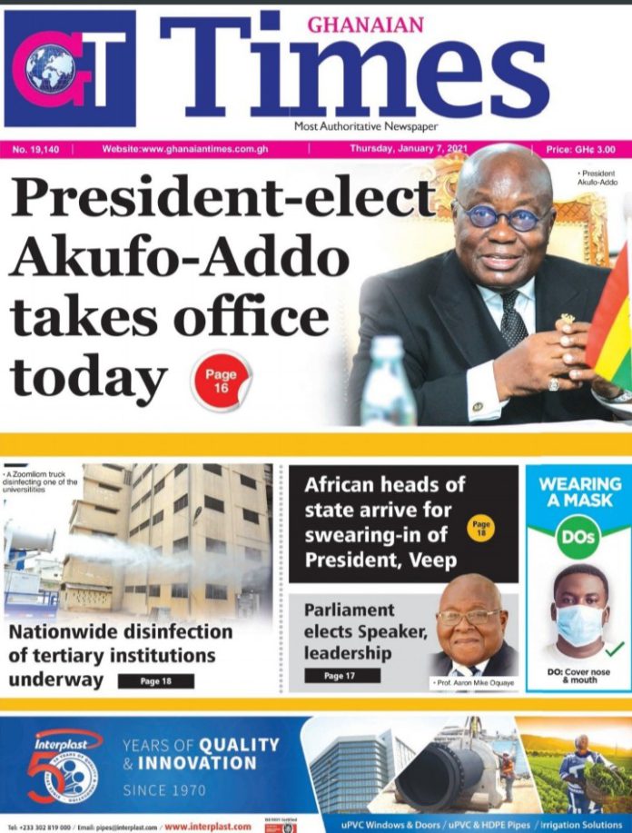 Newspaper Headlines: Thursday, January 7, 2021 Newspaper Headlines January 7, 2021 8:00 am - Audio By Carbonatix FacebookWhatsAppTwitterTelegramEmailPinterestPrint Previous articleAlban Bagbin elected Speaker of 8th Parliament?Next articleMoment Carlos Ahenkorah snatched ballot sheets [Video] RELATED ARTICLES Newspaper Headlines Newspaper headlines: Monday, November 24, 2025 Newspaper Headlines Newspaper headlines: Friday, November 21, 2025 Newspaper Headlines Newspaper headlines: Thursday, November 20, 2025