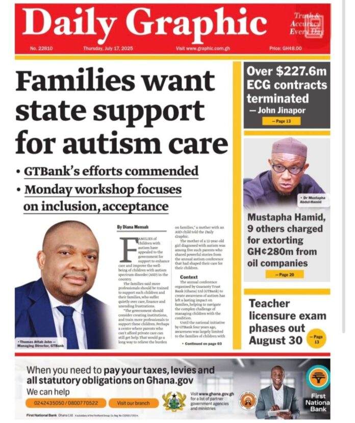 Newspaper headlines: Thursday, July 17, 2025 Newspaper Headlines July 17, 2025 8:13 am - Audio By Carbonatix FacebookWhatsAppTwitterTelegramEmailPinterestPrint Previous articleDriver crashes into Akufo-Addo’s Nima residence wall [Photos]Next articleMan arrested with over 400 boxes of tramadol in Tamale collapses in court RELATED ARTICLES Local News Asantehene demands enforcement of law recognising Naba Azoka II as Bawku Chief Local News Government to issue position on Bawku peace mediation report within 24 hours Local News Bryan Acheampong says Bawumia is his biggest competitor in NPP race