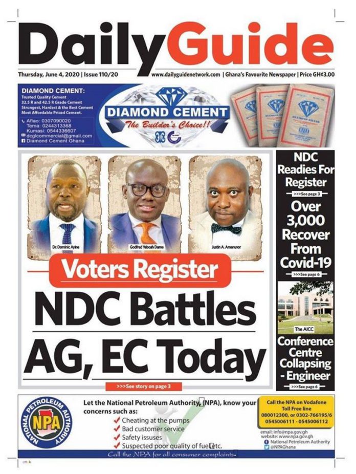 Newspaper Headlines: Thursday, June 4, 2020 SourceAdomonline.com Newspaper Headlines June 4, 2020 7:17 am - Audio By Carbonatix FacebookWhatsAppTwitterTelegramEmailPinterestPrint Previous articleAsiedu Nketia courts support for stance against voters’ registration requirementsNext article4 strange sexual traditions that are still practised in Africa RELATED ARTICLES Newspaper Headlines Newspaper headlines: Monday, November 24, 2025 Newspaper Headlines Newspaper headlines: Friday, November 21, 2025 Newspaper Headlines Newspaper headlines: Thursday, November 20, 2025