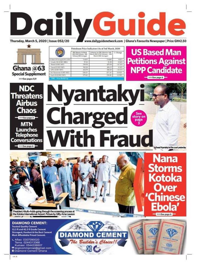 Newspaper Headlines: Thursday, March 5, 2020 Newspaper HeadlinesUncategorized March 5, 2020 7:15 am - Audio By Carbonatix FacebookWhatsAppTwitterTelegramEmailPinterestPrint Previous articleHealth Minister snubs Haruna IddrisuNext articleLotto fraudster arrested in Kumasi over outrageous commission RELATED ARTICLES Newspaper Headlines Newspaper headlines: Monday, November 24, 2025 Newspaper Headlines Newspaper headlines: Friday, November 21, 2025 Newspaper Headlines Newspaper headlines: Thursday, November 20, 2025