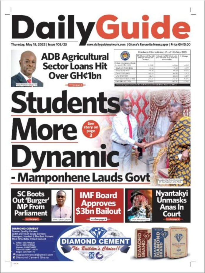 Newspaper Headlines: Thursday, May 18, 2023 Newspaper Headlines May 18, 2023 10:13 am - Audio By Carbonatix FacebookWhatsAppTwitterTelegramEmailPinterestPrint Previous articleSam George shares post-election lessonsNext articleHearing of Charles Bissue’s suit against Special Prosecutor deferred RELATED ARTICLES Newspaper Headlines Newspaper headlines: Monday, November 24, 2025 Newspaper Headlines Newspaper headlines: Friday, November 21, 2025 Newspaper Headlines Newspaper headlines: Thursday, November 20, 2025