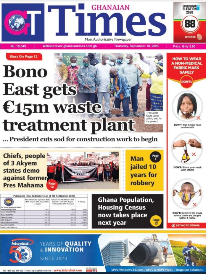 Newspaper Headlines: Thursday, September 10, 2020 Newspaper Headlines September 10, 2020 7:33 am - Audio By Carbonatix FacebookWhatsAppTwitterTelegramEmailPinterestPrint Previous articleAll is set for 2020 BECE amidst tight security – WAECNext article4 simple ways to use onion juice for dandruff RELATED ARTICLES Newspaper Headlines Newspaper headlines: Monday, November 24, 2025 Newspaper Headlines Newspaper headlines: Friday, November 21, 2025 Newspaper Headlines Newspaper headlines: Thursday, November 20, 2025