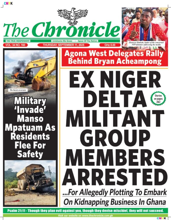 Newspaper headlines: Thursday, September 11, 2025 Newspaper Headlines September 11, 2025 7:55 am - Audio By Carbonatix FacebookWhatsAppTwitterTelegramEmailPinterestPrint Previous articleAccra passengers stranded in HoNext articleShe Builds 2025 Conference: Gender Minister, stakeholders advocate for women’s leadership and empowerment TagsNewspaper headlines RELATED ARTICLES Local News Mamprugu Overlord rejects Otumfuo’s Bawku mediation report, calls process flawed Local News Shamamanhene Osagyefo Kwaw Frieku IV officially gazetted by Western Regional House of Chiefs Local News Walewale: Gunmen open fire on bus, two critically injured