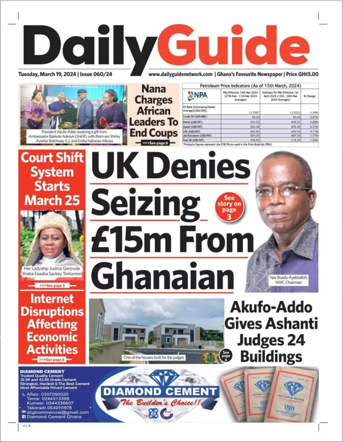 Newspaper headlines: Tuesday 19th March 2024 Newspaper Headlines March 19, 2024 5:56 am - Audio By Carbonatix FacebookWhatsAppTwitterTelegramEmailPinterestPrint Previous articleElectricity metres should be given to citizens for free – Bernard MornahNext articleJoy FM’s Eastern Camp Adventure: Discoveries, experiences, excitement! TagsNewspaper headlines RELATED ARTICLES Entertainment I’m divorced – Nana Ama Mcbrown reveals Local News Obuasi Police arrest 40 suspects in coordinated anti-crime operations Education Economic realities hinder full funding for research – Education Minister