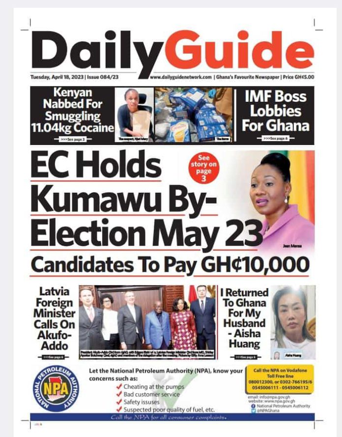 Newspaper Headlines: Tuesday, April 18, 2023 Newspaper Headlines April 18, 2023 6:59 am - Audio By Carbonatix FacebookWhatsAppTwitterTelegramEmailPinterestPrint Previous articlePastor, three others arraigned for assaulting alleged ‘witch’Next articleThere is a price to pay to be a Christian – Dag Heward-Mills RELATED ARTICLES Newspaper Headlines Newspaper headlines: Monday, November 24, 2025 Newspaper Headlines Newspaper headlines: Friday, November 21, 2025 Newspaper Headlines Newspaper headlines: Thursday, November 20, 2025