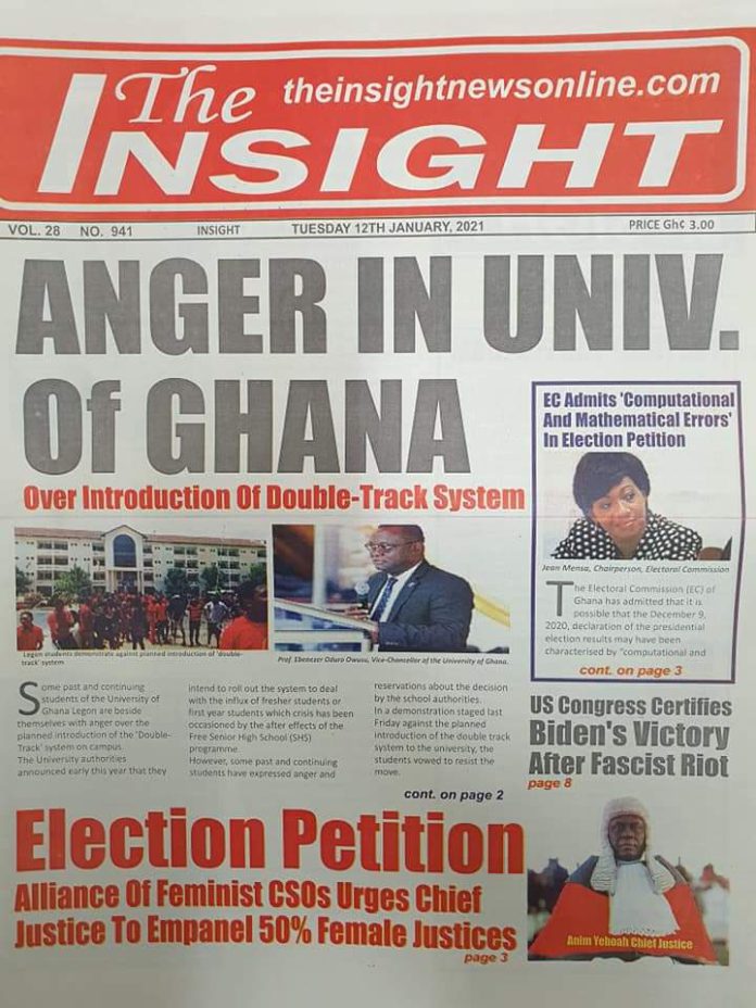 Newspaper Headlines: Tuesday, January 12, 2021 Newspaper Headlines January 12, 2021 7:16 am - Audio By Carbonatix FacebookWhatsAppTwitterTelegramEmailPinterestPrint Previous articleCourt adjourns Ablekuma Central election shooting caseNext articleNDC Techiman South PC petitions court to be declared winner of polls RELATED ARTICLES Newspaper Headlines Newspaper headlines: Monday, November 24, 2025 Newspaper Headlines Newspaper headlines: Friday, November 21, 2025 Newspaper Headlines Newspaper headlines: Thursday, November 20, 2025