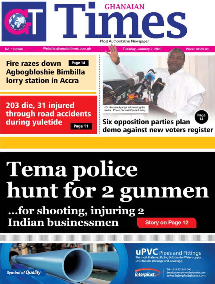 Newspaper Headlines: Tuesday, January 7, 2020 Newspaper HeadlinesUncategorized January 7, 2020 7:52 am - Audio By Carbonatix FacebookWhatsAppTwitterTelegramEmailPinterestPrint Previous articleCentral Region fisherfolks demand meeting with Akufo-AddoNext articleCID tasked to probe alleged theft of 400 tricycles at Northern Development Authority RELATED ARTICLES Newspaper Headlines Newspaper headlines: Monday, November 24, 2025 Newspaper Headlines Newspaper headlines: Friday, November 21, 2025 Newspaper Headlines Newspaper headlines: Thursday, November 20, 2025