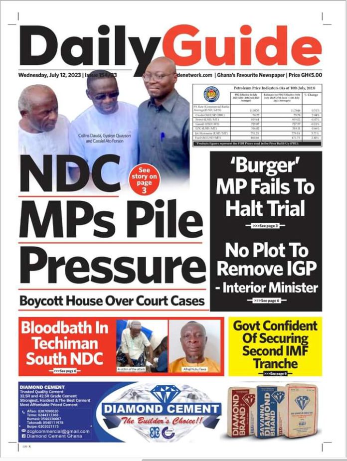 Newspaper Headlines: Tuesday, July 12, 2023 Newspaper Headlines July 12, 2023 6:45 am - Audio By Carbonatix FacebookWhatsAppTwitterTelegramEmailPinterestPrint Previous articleWimbledon 2023: Novak Djokovic beats Andrey Rublev to set up Jannik Sinner semi-finalNext articleCharles Bissue accuses OSP of spreading misinformation regarding ongoing lawsuit RELATED ARTICLES News Sam Jonah seeks Ablakwa’s intervention over alleged seizure of investments in Nigeria Local News Lands ministry engages Ewoyaa chiefs, residents in successful lithium agreement talks News Kwesi Botchway Jnr requests update from A-G on EOCO galamsey investigations