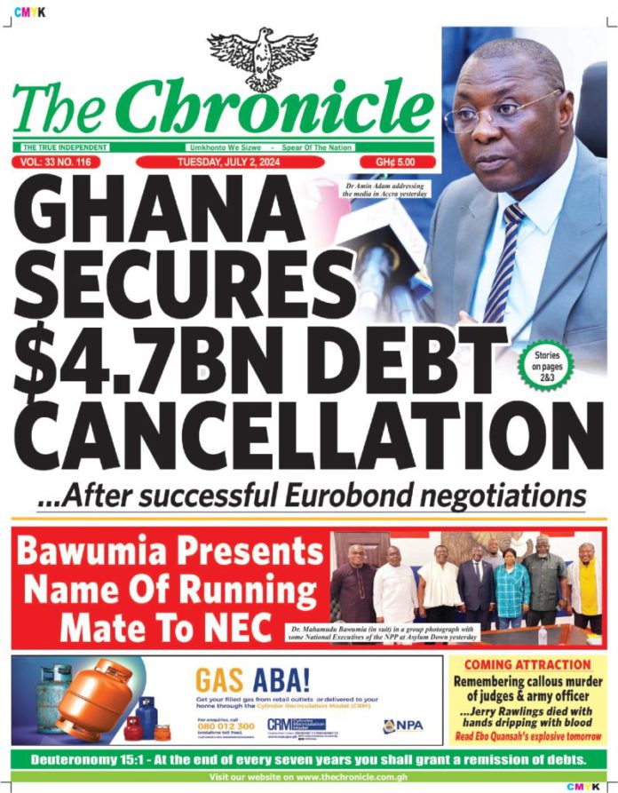 Newspaper headlines: Tuesday, July 2, 2024 News July 2, 2024 9:15 am - Audio By Carbonatix FacebookWhatsAppTwitterTelegramEmailPinterestPrint Previous articleEANAN inks Memorandum of Understanding (MOU) with University of Dubai, Xi’an Jiaotong University and Zhuji SRJ Materials Laboratory to foster international cooperation in applied sciencesNext articleBawumia selected NAPO based on experience – Nana B TagsNewspaper headlines RELATED ARTICLES Local News Asantehene demands enforcement of law recognising Naba Azoka II as Bawku Chief Local News Government to issue position on Bawku peace mediation report within 24 hours Local News Bryan Acheampong says Bawumia is his biggest competitor in NPP race