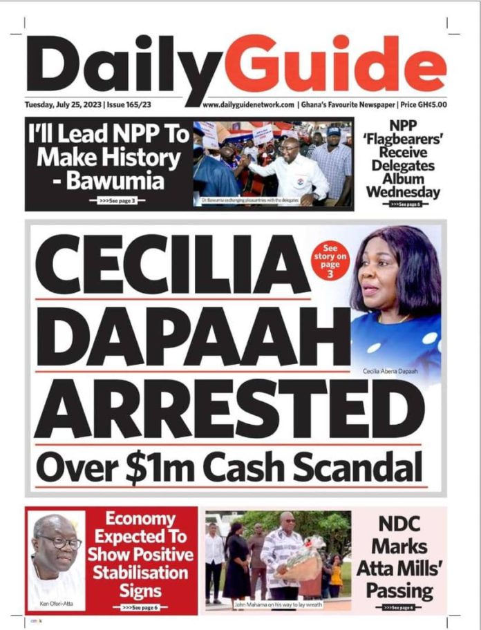Newspaper Headlines: Tuesday, July 25, 2023 Newspaper Headlines July 25, 2023 6:29 am - Audio By Carbonatix FacebookWhatsAppTwitterTelegramEmailPinterestPrint Previous articleNana Oye blasts Akufo-Addo over handling of Cecilia Dapaah’s resignationNext articleEjisu to face Santasi in the final of 2023 MTN Ashantifest Football Fiesta on July 30 RELATED ARTICLES Nigeria Nigeria’s House to look into row between regulator and Dangote over fuel imports, pricing News Ned Nwoko responds to Regina Daniels’ claims of separation from children News Three friends jailed for a total of 27 years for stealing
