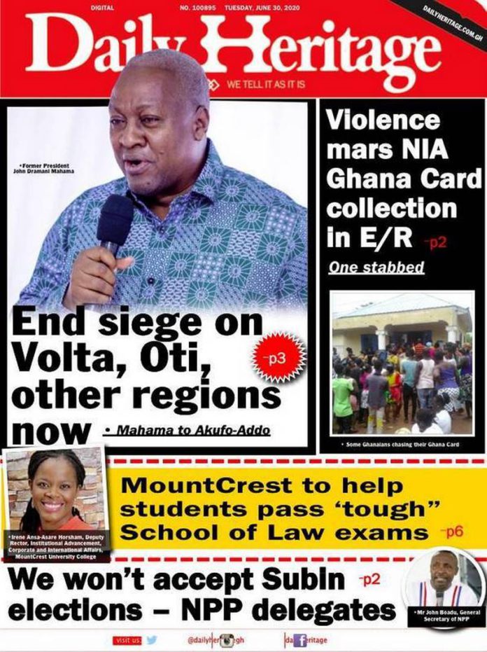 Newspaper Headlines: Tuesday, June 30, 2020 Newspaper Headlines June 30, 2020 7:57 am - Audio By Carbonatix FacebookWhatsAppTwitterTelegramEmailPinterestPrint Previous articleJust In: Ten die in gory accident at Obuasi DunkwaNext articleDzidzor Mensah chases baby daddy after he abandoned her [Video] RELATED ARTICLES Newspaper Headlines Newspaper headlines: Monday, November 24, 2025 Newspaper Headlines Newspaper headlines: Friday, November 21, 2025 Newspaper Headlines Newspaper headlines: Thursday, November 20, 2025