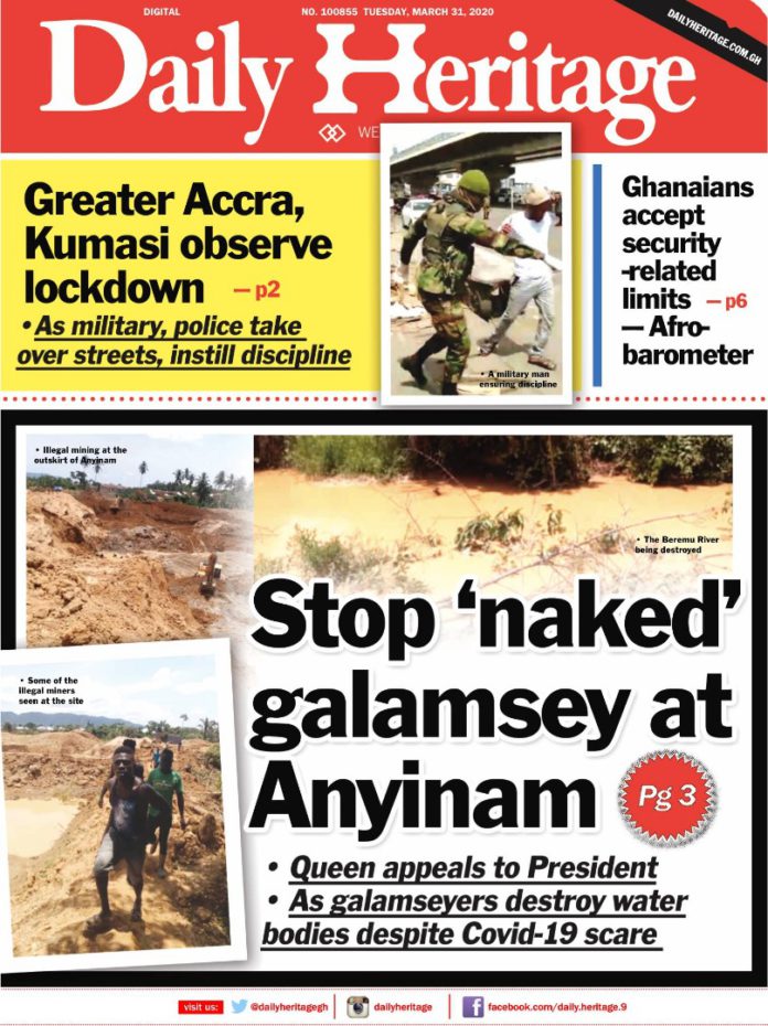 Newspaper Headlines: Tuesday, March 31, 2020 Newspaper Headlines March 31, 2020 7:03 am - Audio By Carbonatix FacebookWhatsAppTwitterTelegramEmailPinterestPrint Previous articleAccra on Day 1 of the COVID-19 lockdownNext articleGovernment denies claims some state officials have tested positive for coronavirus RELATED ARTICLES Newspaper Headlines Newspaper headlines: Monday, November 24, 2025 Newspaper Headlines Newspaper headlines: Friday, November 21, 2025 Newspaper Headlines Newspaper headlines: Thursday, November 20, 2025