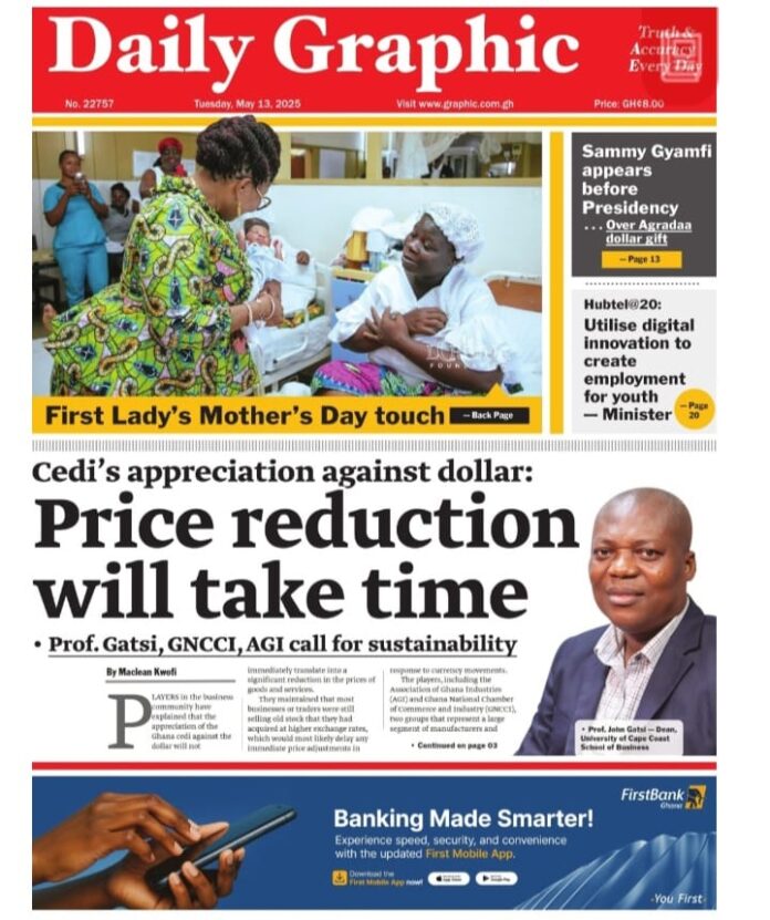 Newspaper headlines: Tuesday, May 13, 2025 Newspaper Headlines May 13, 2025 7:19 am - Audio By Carbonatix FacebookWhatsAppTwitterTelegramEmailPinterestPrint Previous articleBond Market: Secondary activity eases 2.67% to GH¢1.23bnNext articleProf Bokpin warns gov’t over 2026 budget TagsNewspaper headlines RELATED ARTICLES Local News Gov’t backs Asantehene’s Bawku Mediation Report, launches GH¢1bn revitalisation fund Local News Volta must retain its role as Ghana’s ‘Oxygen’ – Mahama Local News UK and Ghana co-host African Development Fund 17 Pledge Conference in London