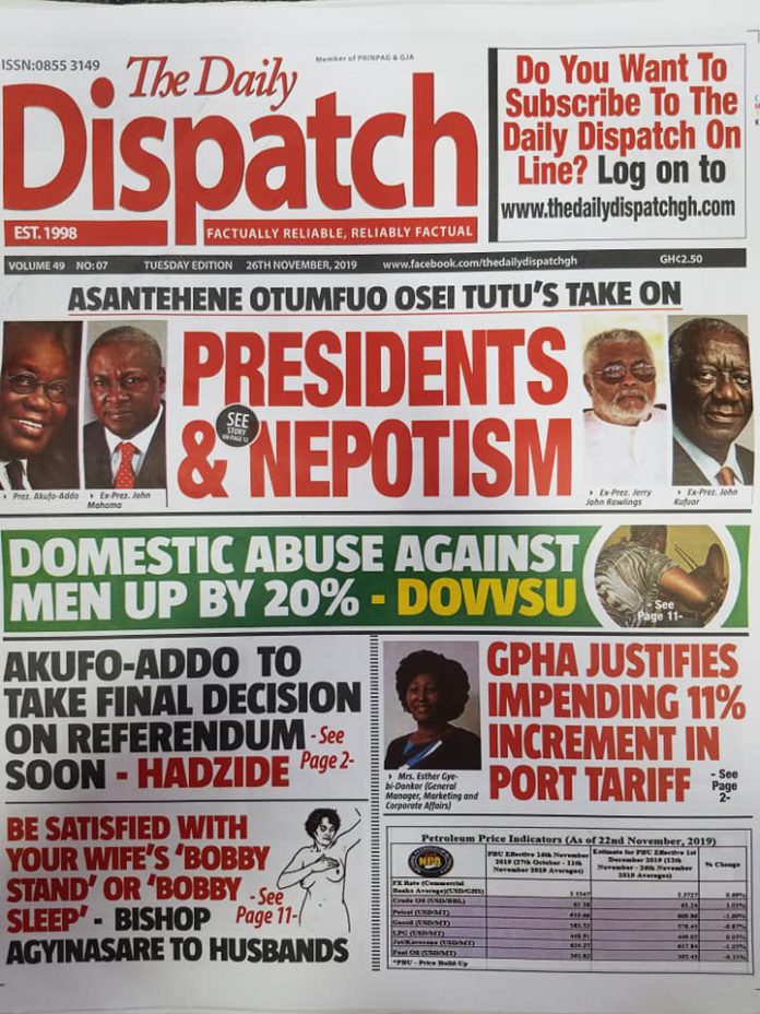 Newspaper Headlines: Tuesday, November 26, 2019 Newspaper HeadlinesUncategorized November 26, 2019 6:50 am - Audio By Carbonatix FacebookWhatsAppTwitterTelegramEmailPinterestPrint Previous articleRigworld gets OMC licenseNext articleArgentina: Catholic priests jailed for abusing deaf children RELATED ARTICLES Newspaper Headlines Newspaper headlines: Monday, November 24, 2025 Newspaper Headlines Newspaper headlines: Friday, November 21, 2025 Newspaper Headlines Newspaper headlines: Thursday, November 20, 2025