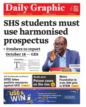 Newspaper headlines: Tuesday, September 23, 2025 Newspaper Headlines September 23, 2025 7:34 am - Audio By Carbonatix FacebookWhatsAppTwitterTelegramEmailPinterestPrint Previous article20-year-old found dead after church service in AgogoNext articleNPP Youth Wing hits streets over alleged state intimidation TagsNewspaper headlines RELATED ARTICLES Local News Mamprugu Overlord rejects Otumfuo’s Bawku mediation report, calls process flawed Local News Shamamanhene Osagyefo Kwaw Frieku IV officially gazetted by Western Regional House of Chiefs Local News Walewale: Gunmen open fire on bus, two critically injured