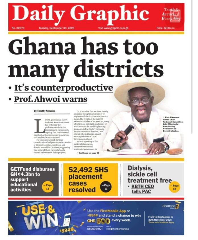 Newspaper headlines: Tuesday, September 30, 2025 Newspaper Headlines September 30, 2025 6:49 am - Audio By Carbonatix FacebookWhatsAppTwitterTelegramEmailPinterestPrint Previous articleThousands of workers in limbo as US-Africa trade deal set to expireNext articleMahama’s UN speech ticked all the boxes, I am proud of him – Ibn Chambas TagsNewspaper headlines RELATED ARTICLES Local News NPP denies involvement in bee attack on NDC supporters Local News Bee Attack: NPP allegedly brought three mallams from Niger to Kpandai – Mustapha Gbande Local News Supreme Court will dismiss Kpandai case; it lacks merit – Tanko Computer