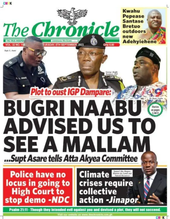 Newspaper headlines: Tuesday, September 5, 2023 NewsLocal News September 5, 2023 8:10 am - Audio By Carbonatix FacebookWhatsAppTwitterTelegramEmailPinterestPrint Previous articleCedi expected to trade steadily this week; sells at ¢11.50 to a dollarNext articleCETAG suspends strike TagsNewspaper headlines RELATED ARTICLES Local News Republic Bank begins solar-powered borehole project at Taviefe SHS Local News Kpandai: Supreme Court’s decision to suspend rerun surprising but fair – Justice Abdullai Local News Rev. Wengam leads Assemblies of God delegation to congratulate Chief of Defence Staff