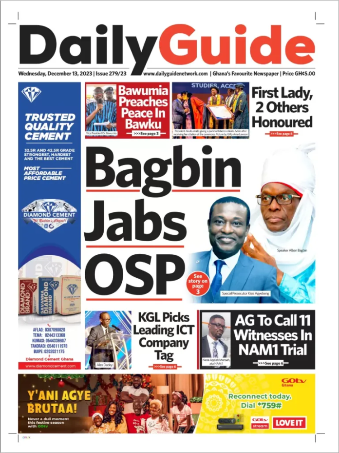 Newspaper headlines: Wednesday 13th December 2023 Newspaper Headlines December 13, 2023 7:57 am - Audio By Carbonatix FacebookWhatsAppTwitterTelegramEmailPinterestPrint Previous articleGES’ handling of interdicted headteachers unprofessional – Nortsu-KotoeNext articleKontinental Energy Services (KES) Partners with US-Based Gulfstream Services Inc. to Serve African Oil & Gas Markets RELATED ARTICLES Newspaper Headlines Newspaper headlines: Monday, November 24, 2025 Newspaper Headlines Newspaper headlines: Friday, November 21, 2025 Newspaper Headlines Newspaper headlines: Thursday, November 20, 2025