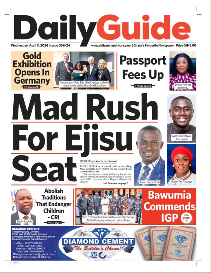Newspaper headlines: Wednesday 3rd April 2024 Newspaper Headlines April 3, 2024 5:39 am - Audio By Carbonatix FacebookWhatsAppTwitterTelegramEmailPinterestPrint Previous articleMajor stakeholders in energy sector to meet over power outagesNext articleOne-week observance for policewoman killed in Kyekyewere accident announced TagsNewspaper headlines RELATED ARTICLES Local News Asantehene demands enforcement of law recognising Naba Azoka II as Bawku Chief Local News Government to issue position on Bawku peace mediation report within 24 hours Local News Bryan Acheampong says Bawumia is his biggest competitor in NPP race