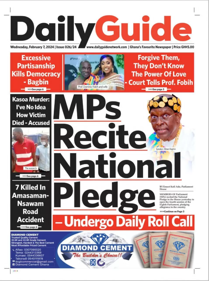 Newspaper headlines: Wednesday 7th February 2024 Newspaper Headlines February 7, 2024 6:53 am - Audio By Carbonatix FacebookWhatsAppTwitterTelegramEmailPinterestPrint Previous articleAburi Girls SHS student reported deadNext articlePrincipal Secretary (PS) Harry Kimtai Launches Distribution of 150,000 Blood Bags to Strengthen Healthcare Nationwide TagsNewspaper headlines RELATED ARTICLES Local News Asantehene demands enforcement of law recognising Naba Azoka II as Bawku Chief Local News Government to issue position on Bawku peace mediation report within 24 hours Local News Bryan Acheampong says Bawumia is his biggest competitor in NPP race