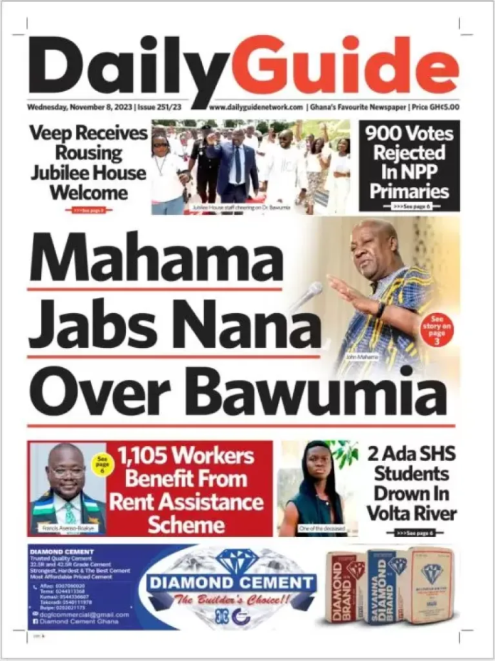 Newspaper headlines: Wednesday 8th November 2023 Newspaper Headlines November 8, 2023 7:54 am - Audio By Carbonatix FacebookWhatsAppTwitterTelegramEmailPinterestPrint Previous articleSigns someone isn’t ready for love, even if they wish they wereNext articleWhy Mr Ibu’s leg was amputated – Family explains RELATED ARTICLES Newspaper Headlines Newspaper headlines: Monday, November 24, 2025 Newspaper Headlines Newspaper headlines: Friday, November 21, 2025 Newspaper Headlines Newspaper headlines: Thursday, November 20, 2025