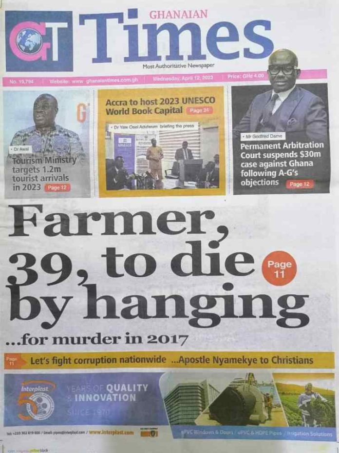 Newspaper Headlines: Wednesday, April 12, 2023 Newspaper Headlines April 12, 2023 8:55 am - Audio By Carbonatix FacebookWhatsAppTwitterTelegramEmailPinterestPrint Previous articleIMF revises Ghana’s average inflation forecast to 45.4% in 2023Next articleHealth Ministry sets records straight on UK red list [Listen] RELATED ARTICLES Newspaper Headlines Newspaper headlines: Monday, November 24, 2025 Newspaper Headlines Newspaper headlines: Friday, November 21, 2025 Newspaper Headlines Newspaper headlines: Thursday, November 20, 2025
