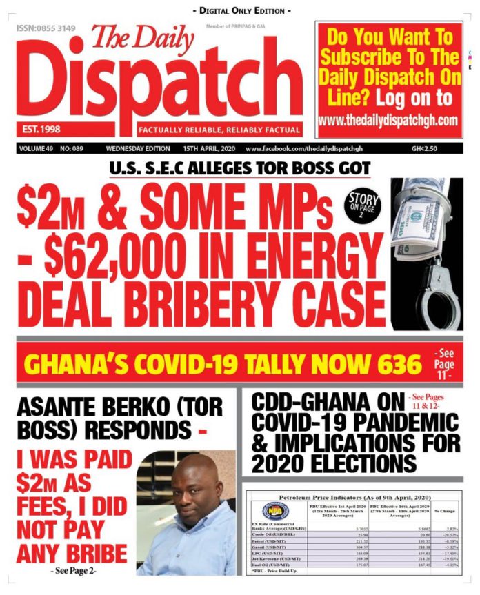 Newspaper Headlines: Wednesday, April 15, 2020 Newspaper Headlines April 15, 2020 7:42 am - Audio By Carbonatix FacebookWhatsAppTwitterTelegramEmailPinterestPrint Previous articleScrap dealer sprays substance into policewoman’s eye [photo]Next articleUK-based Ghanaian bus-driver, deacon dies after contracting coronavirus RELATED ARTICLES Newspaper Headlines Newspaper headlines: Monday, November 24, 2025 Newspaper Headlines Newspaper headlines: Friday, November 21, 2025 Newspaper Headlines Newspaper headlines: Thursday, November 20, 2025