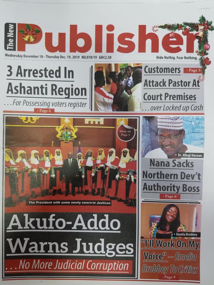 Newspaper Headlines: Wednesday, December 18, 2019 Newspaper HeadlinesUncategorized December 18, 2019 7:37 am - Audio By Carbonatix FacebookWhatsAppTwitterTelegramEmailPinterestPrint Previous articleDoctor falsely diagnosed kids with cancer to scare parents into paying for careNext articleMenzgold to announce payment plan today RELATED ARTICLES Newspaper Headlines Newspaper headlines: Monday, November 24, 2025 Newspaper Headlines Newspaper headlines: Friday, November 21, 2025 Newspaper Headlines Newspaper headlines: Thursday, November 20, 2025