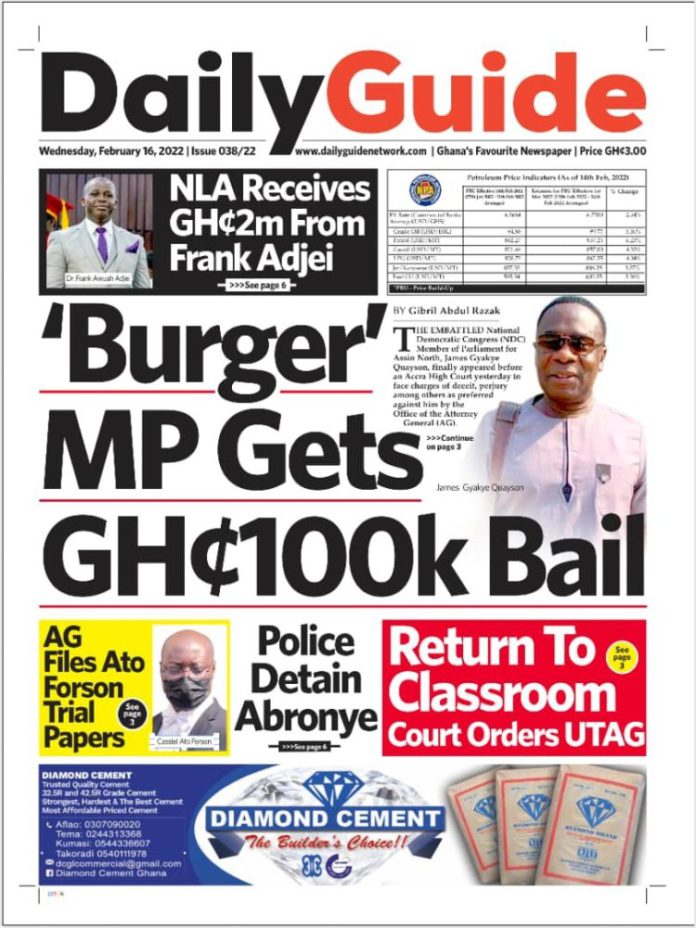 Newspaper Headlines: Wednesday, February 16, 2022 Newspaper Headlines February 16, 2022 8:25 am - Audio By Carbonatix FacebookWhatsAppTwitterTelegramEmailPinterestPrint Previous articleLamashegu: Irate youth set fire officer’s house ablaze [Video]Next articleExposé on how National Blood Service syndicate illegally sell a pint of blood for ¢750 [Video] RELATED ARTICLES Newspaper Headlines Newspaper headlines: Monday, November 24, 2025 Newspaper Headlines Newspaper headlines: Friday, November 21, 2025 Newspaper Headlines Newspaper headlines: Thursday, November 20, 2025
